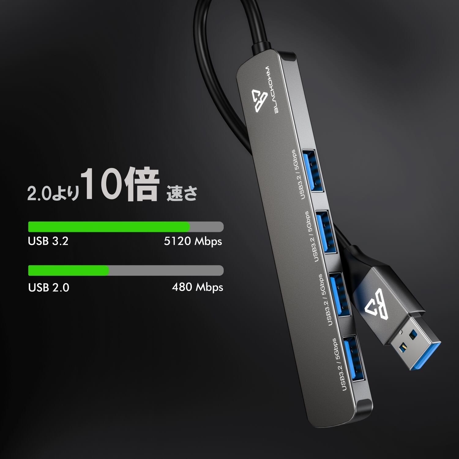 最大で4つのUSBデバイスを同時に接続でき、転送速度5Gbpsまで、