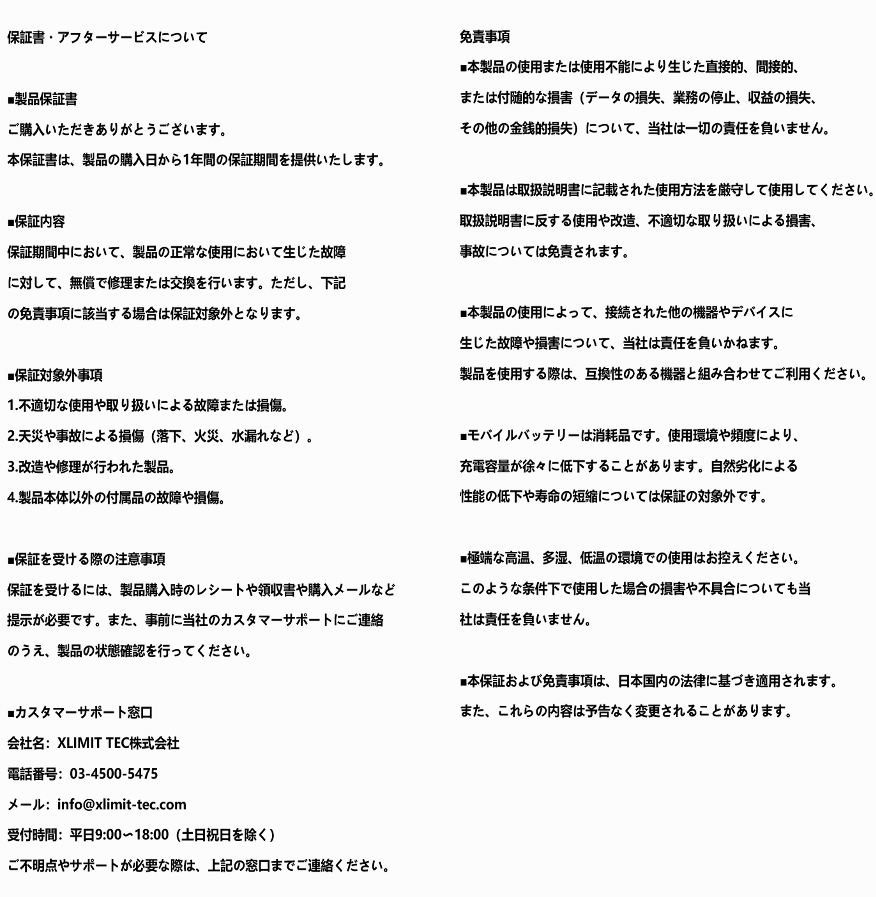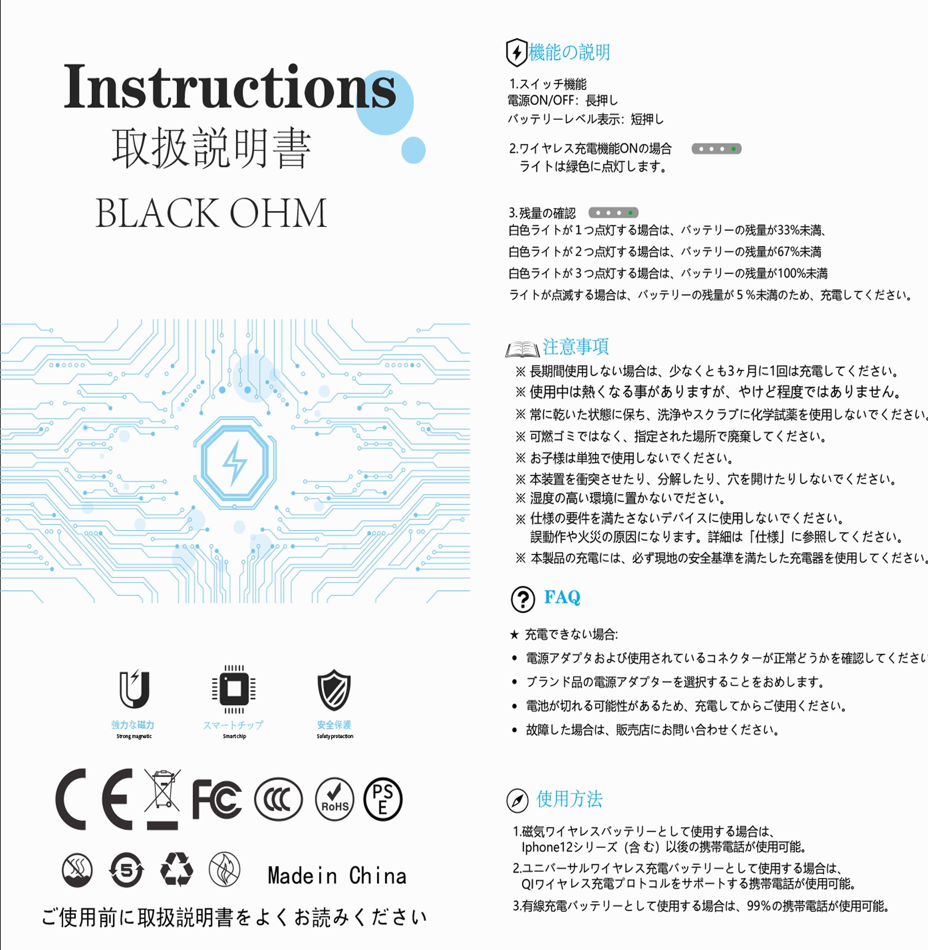 ・PSE、UN38.3飛行持ちこみ可能、CE、FCC、RoHS