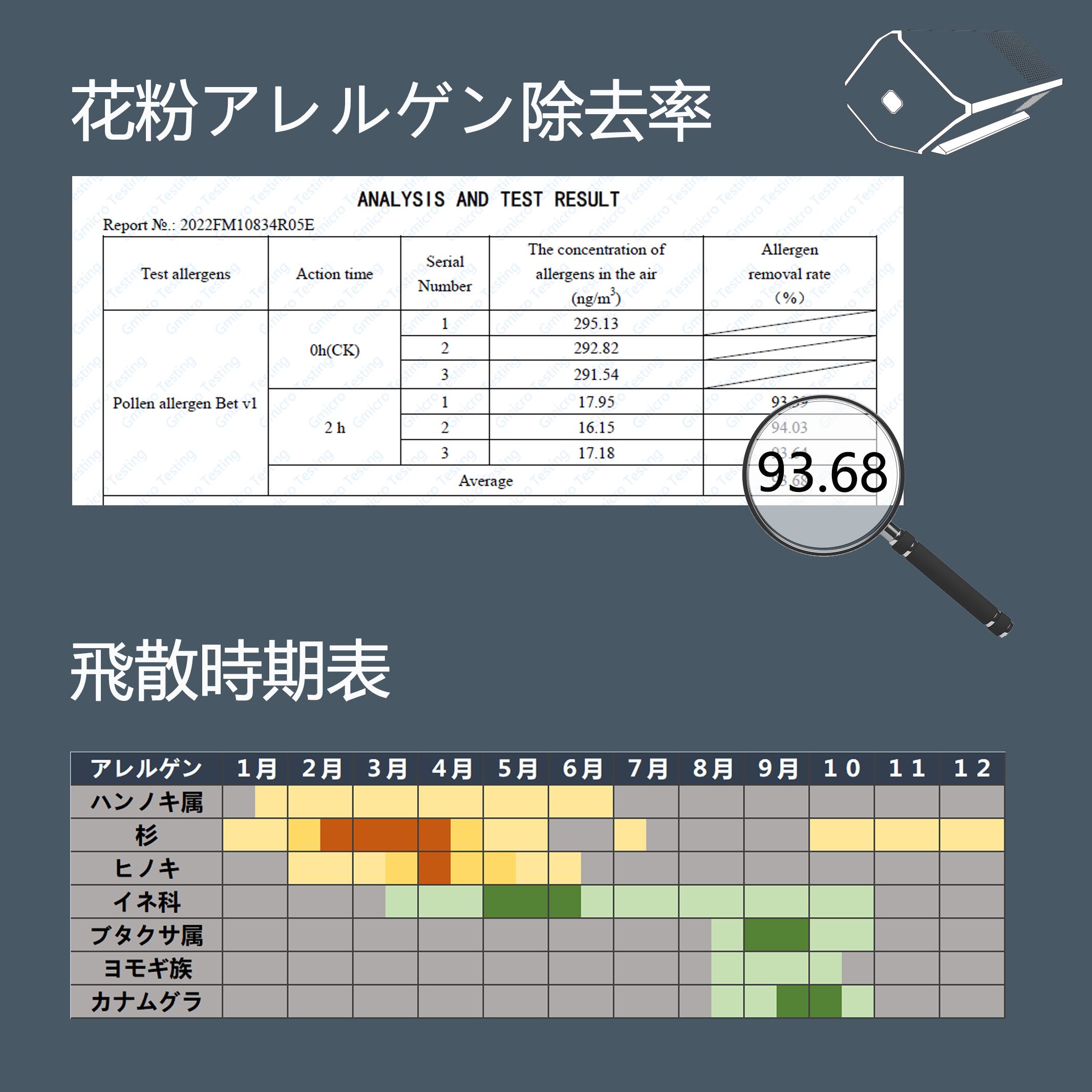 ・花粉除去効果:93.68%(試験機関による実証)